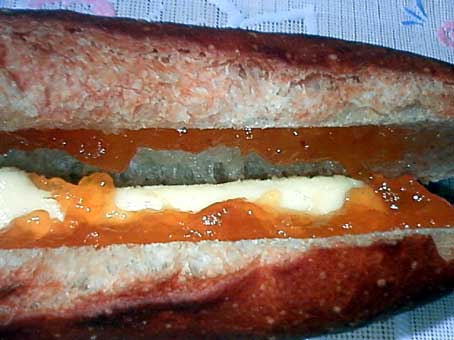 アプリコットジャムとバターがサンドされています。