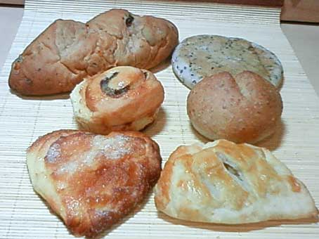 後列左から、「フルーツパン」・「黒ゴマあんぱん」