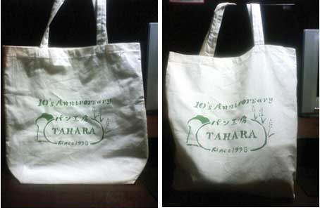 「パン工房 TAHARA 10周年記念オリジナルエコバッグ」(空の状態)