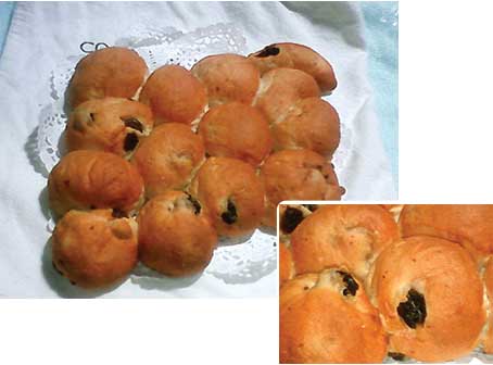 たこ焼き大のプチレーズンパンの集合体です。