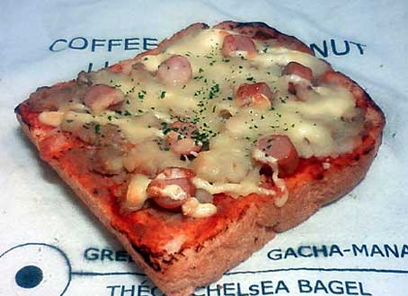 ピザソース、じゃがいも、ウインナー、チーズ、乾燥パセリが乗ってます。