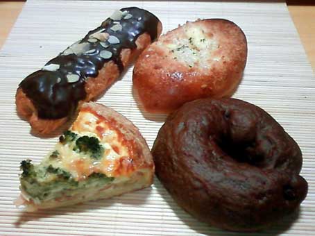 前列左から、「ブロッコリーとベーコンのキッシュ」・「チョコクランベリーベーグル」