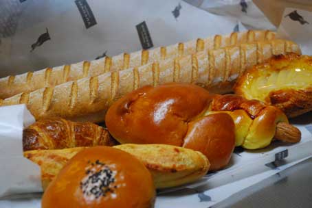その奥がウインナーパン、デニッシュ、ライ麦のバゲット