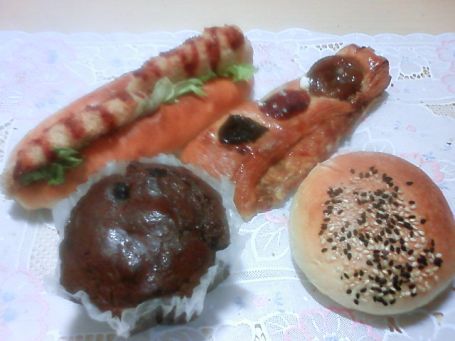 前列左から、「チョコマフィン」、「五色豆パン」