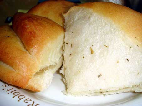 ソフトフランス生地と生地の間にオリーブオイルとハーブ。