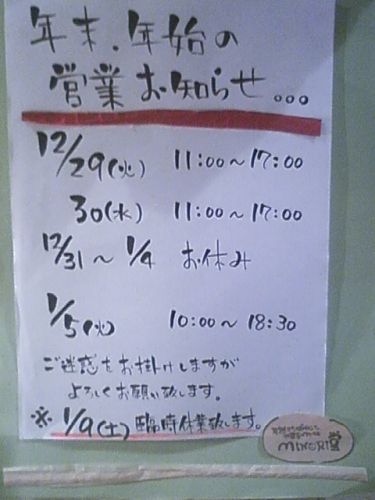 本日(12/9)最後は 『MINORI堂』 さんです。 店内はクリスマスバージョンに…