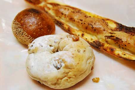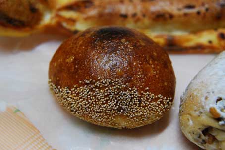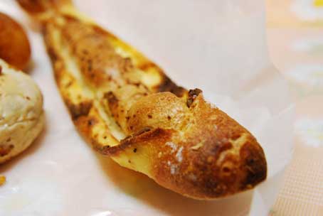 黒コショウが振ってあるパンで、形も味も独創的