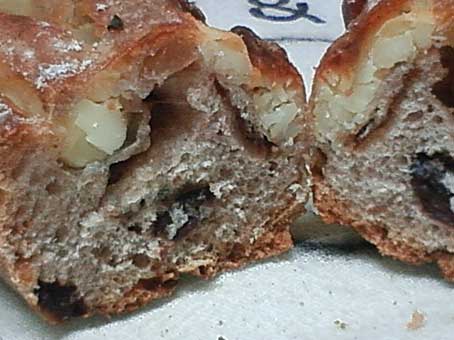 ちょっと変ったしっとりした生地にマンゴーとくるみとクリームチーズが入っています。