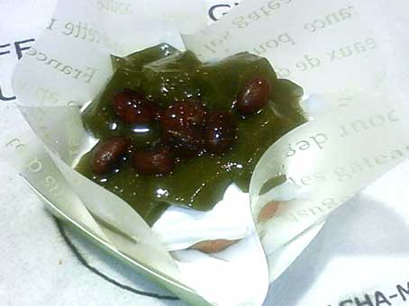 名前のとおり抹茶わらびもちがのってます。あまり甘くはありません。