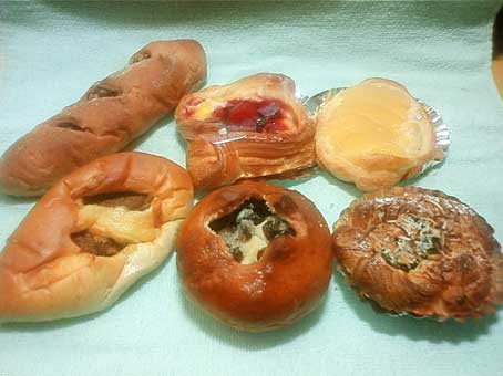前列左から、「カレーパン」・「レーズンパン」・「宇治抹茶ミルク」