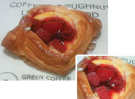 下から、カスタードクリーム、クランベリージャム?ソース?、クランベリー