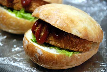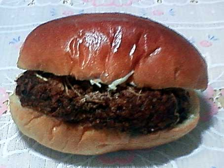 プチパンを軽く焼いてコロッケをはさんでみました。