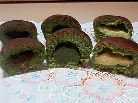 前列左から、「抹茶三昧」・「エダムチーズと黒ゴマのクレセント」