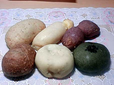 前列左から、「くるみパン」・「ポテトサラダ」・「よもぎあんぱん」