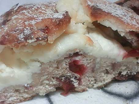中にはたっぷりのクリームチーズ、生地にはクランベリーが…