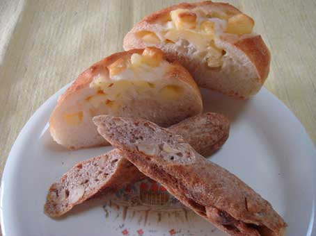 ケーゼ2はフランスパンの生地に角切りチーズが入ってます。