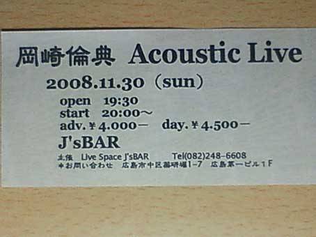 日曜日(11/9)にライヴに行きました。高校時代の同級生が経営しているライヴハウスです。