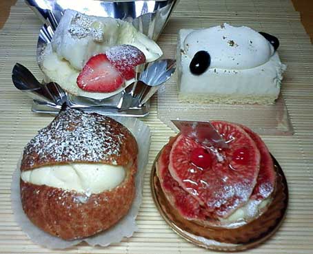 前列左から、「ごつごつ岩シュークリーム」・「いちじくのタルト」
