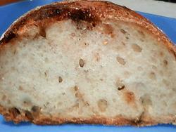 ここの天然酵母パンは切るときもかじるときもクラストがバリバリと音をたてます。歯の丈夫じゃない方は気をつけましょう(笑) クラムはもっちりです。