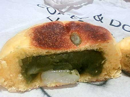 かぼちゃ生地に抹茶あん、白玉入りです。