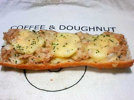 バゲットにツナとゆで卵をのせ、チーズをかけて焼いてあります。