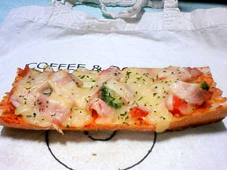 ピザソースもかかっています。早い話がバゲットのピザトーストです。