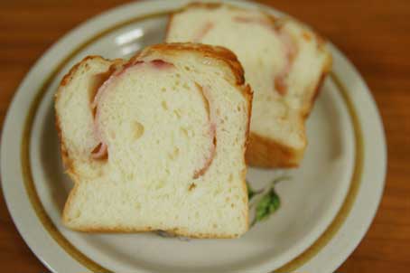 トップに、チーズとたまねぎ、中にはハムとマヨネーズが入ってるらしいです。