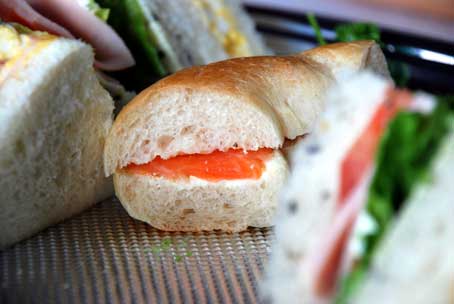 柔らかいパンでサーモンやハム、アボガド、卵などなど