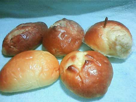 写真:後列左から、「レーズン」・「くるみパン」・「白雪姫の毒りんご」