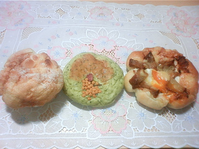 左、「クリームチーズ」、中、「春こしあん」、右、「半熟たまご&チキン」