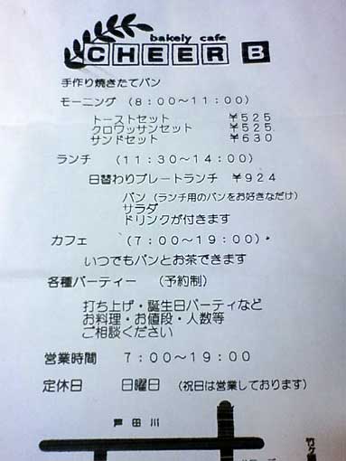 ちょっと捜したけど無事に到着しました、『bakely cafe CHEER-B』です。