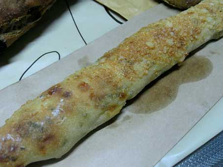 パルメザンチーズがかかったパン。中には豆が練りこんで焼かれています。