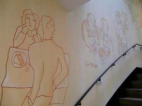 ビルの2階にある「カフェ・トレボン」へ続く階段の壁です。