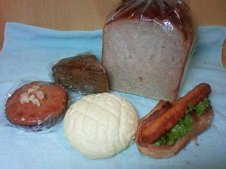 写真:後列左から、「黒糖蒸しパン」・「全粒粉食パン」