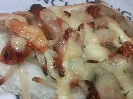 照り焼きチキン、ごぼうサラダ、チーズが乗ってます。