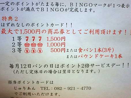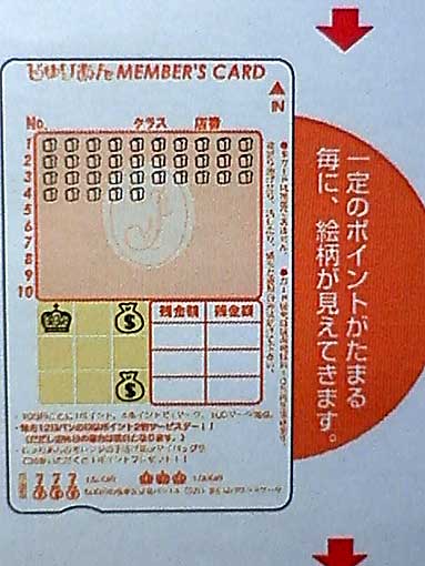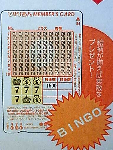 一定のボイントがたまる毎にビンゴゲームの絵柄が…