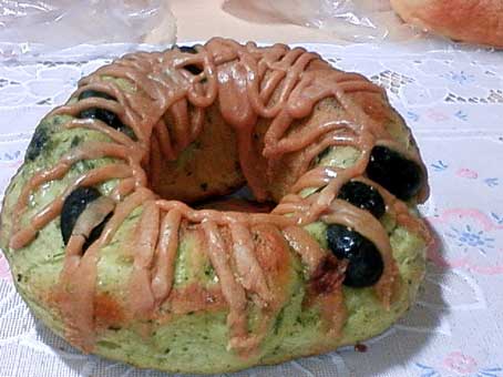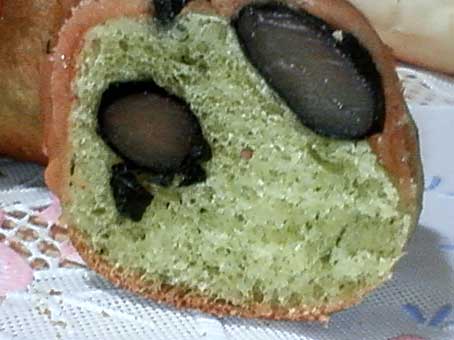 抹茶生地に黒豆が練り込んであります。