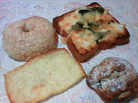 後列左から、「ハードフルーツスティック」、「全粒ロール(クリームチーズ入り)」