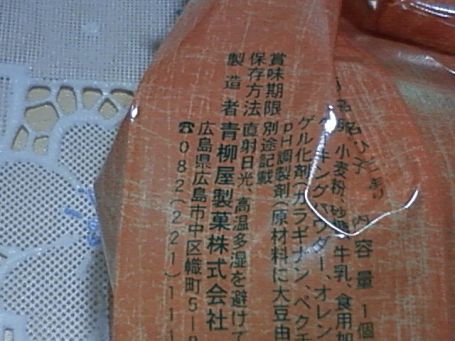 「ひだまり」の裏面、製造者は青柳屋製菓となっています。