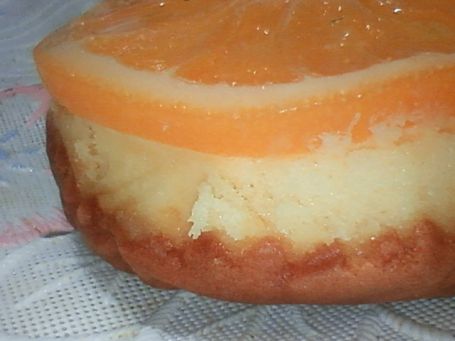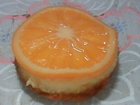 スポンジケーキの上にスライスオレンジが乗ってます。