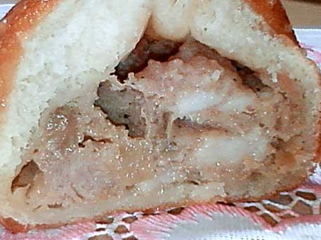 クロワッサン(デニッシュ)の生地に挽肉と玉葱を炒めた具が乗っています。