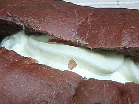 Wチョコ(生地+チョコチップ)にクリームがサンドされています。