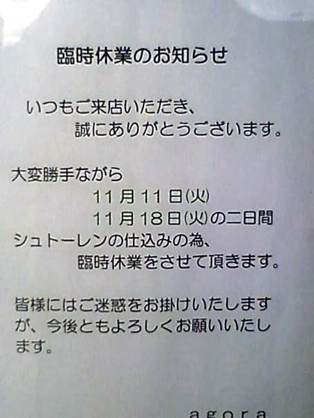チャンスとばかりに仕事場から車で5分の『agora』に行ったんですが…