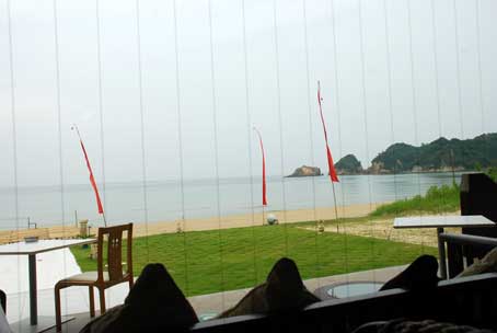 レストランからみた海の風景。テーブルは低いですが、外でも食事が楽しめます。