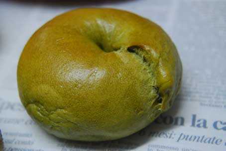 これは抹茶と小豆のベーグル。小豆が少しだけ入っていてほんのりした甘さがあります。