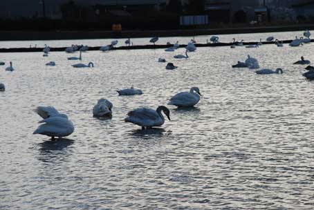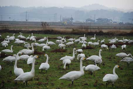 コハクチョウのために、冬でも田んぼに水を張ってくれている農家の方たちに感謝。