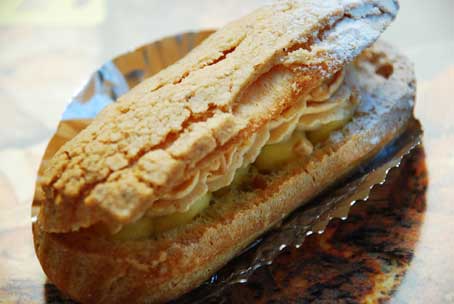 150円のエクレア。中にカリカリっとした食感のアーモンドが入っています。