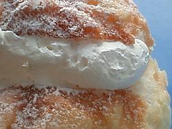 メロンパンに甘さ控えめなホイップクリームをサンドしています。